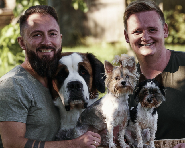 Wir sind Raphael und Andreas – zwei Gründer, fünf Hunde und eine Mission: